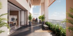 Use of space: We have adopted tropical greens concept apart from the rest of iconic architectural and landmark components.This is achieved by allotting total podium including the stilt area at entry level to a grand and sensual landscape experience. Entire podium is treated as vehicular free zone containing lush landscaped tropical forest theme treatment. Reading deck, senior citizen corner, hogging/walking track loop on the edge, experiential gardens with themes, active play courts, children play areas senior citizen courts amphitheatre, etc., activity areas have been curated on the podium level.Entire stilt is kept open and integrated into the surrounding landscape.3 levels of club house is integrated in one single tower. This project highlights the concept of villas in the sky with private garden spaces. Each living unit is designed as a large format individual villa that suits the wishes and aspirations of present and future lifestyle.