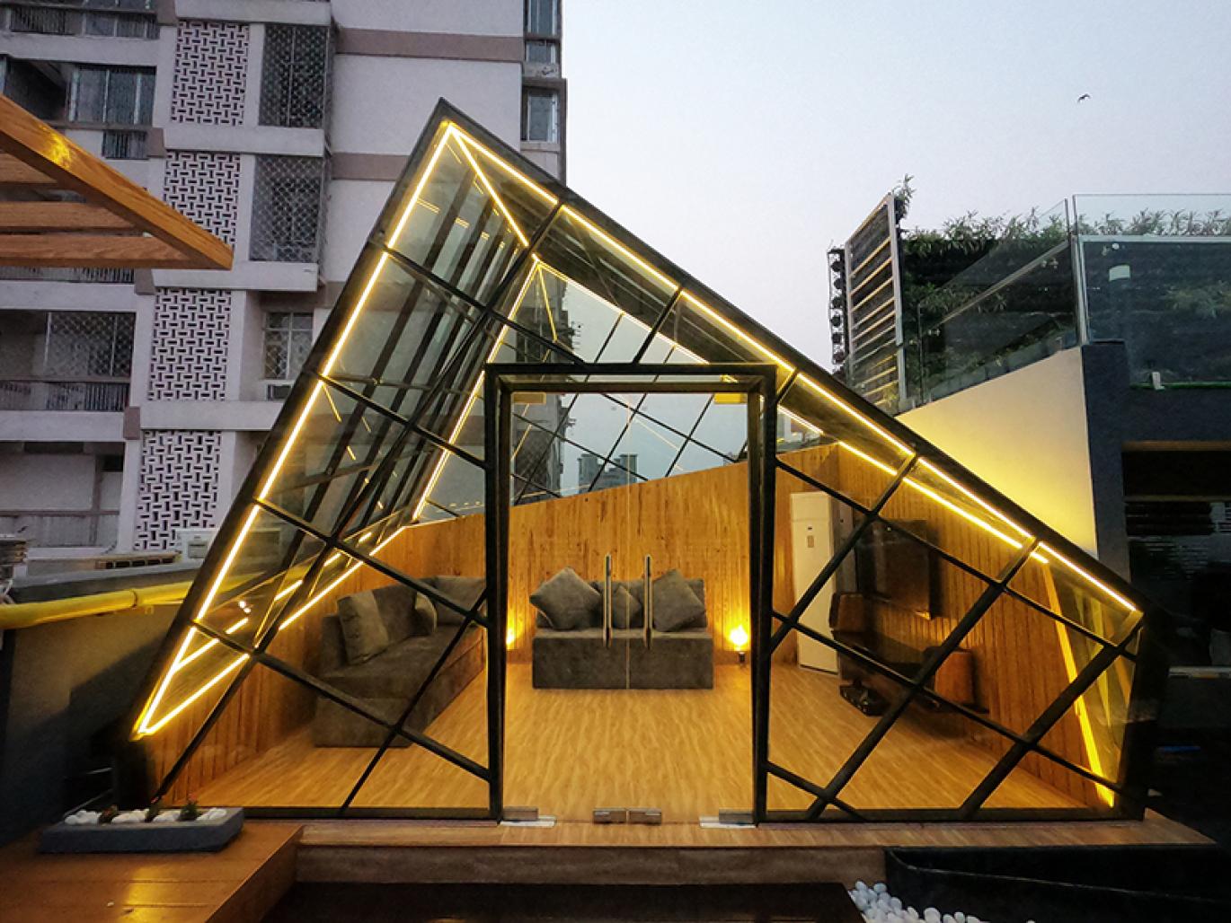to it, there are sit-outs, plants, and everything beautiful. The glasshouse design is