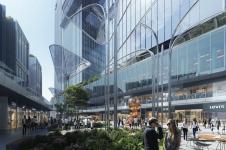 The design vertically allocates the functions to integrate office, rooftop garden, meeting centre, retail, and underground amenities within the limited plot size. The sky meeting space connects the towers and creates an interactive communal space. An urban living room is created on the trapezium-shaped plot, which connects with the surrounding developments and creates an open public space through 3-side entrances fronting the streets.