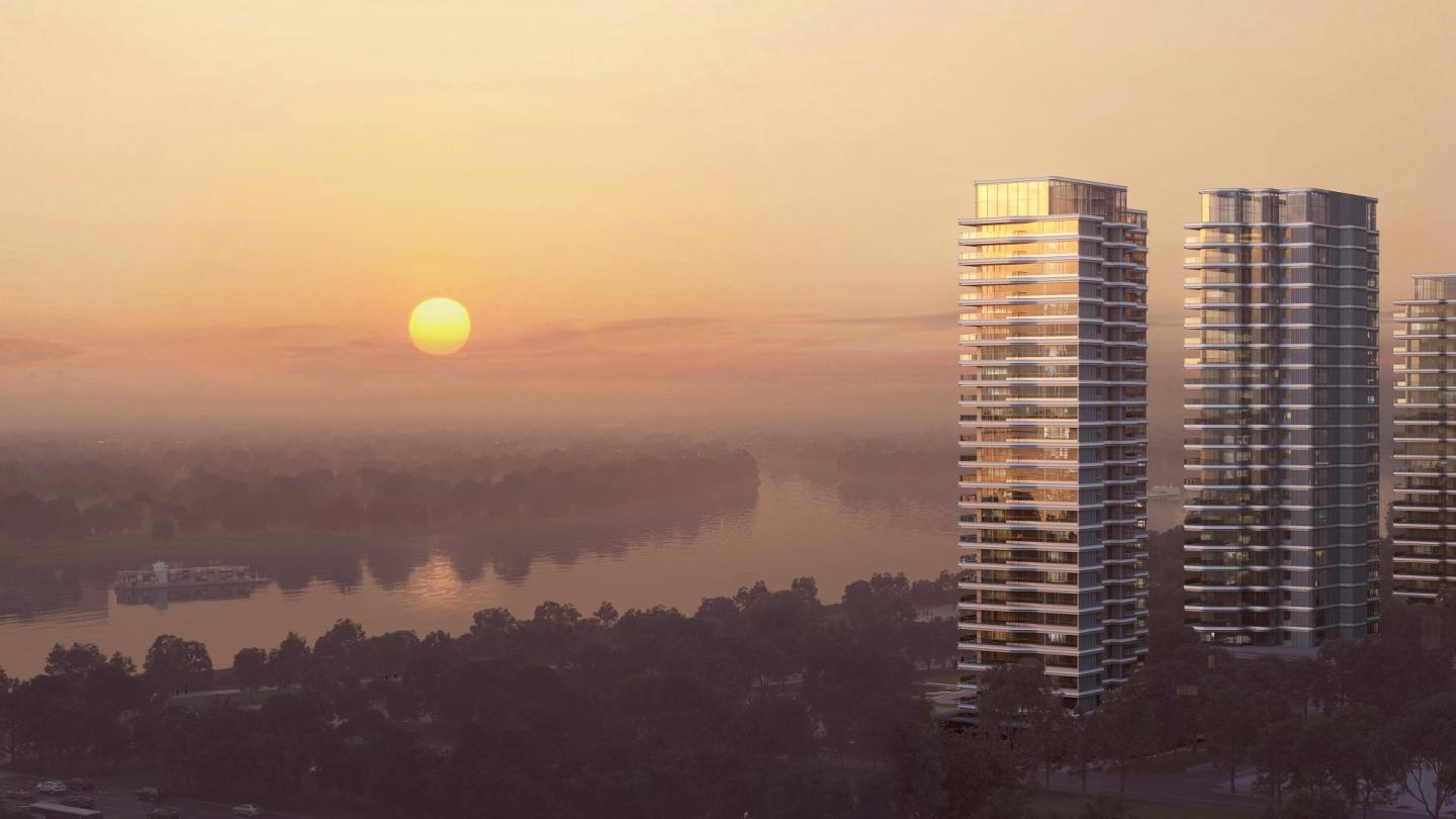 As the only municipal administrative centre of Guangzhou, Nansha New District is leading the future to be a free trade zone as the main linkage between Guangdong, Hong Kong and Macau. Hengli Island, in particular, has been labelled an international financial island, acting as the most integral part of the financial blueprint in activating Pearl Bay, and shall serve as the benchmark for the future CBD of Nansha. Entrusted by China Railway Construction Corporation Limited, Ken Wai, Global Design Principal of Aedas, led the team to create a new landmark that strikes the city’s landscape. The mixed-use project comprises a kindergarten and 3 low-rise buildings of mainly commercial uses by the riverbank, 2 mid-rise buildings for residential, commercial and public service uses in the middle, and 4 high-rise upscale residential towers towards the northern plot. By incorporating an unobstructed river view, and vibrant city life with comprehensive amenities, the project forms a green oasis with close proximity to city living.