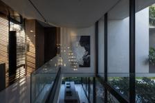 The architectural block is separated and connected by a traffic corridor, with open spaces inside and outside the house, creating natural ventilation into common living spaces. Green layers including trees and water are also developed under this connection that make family members enjoy nature through spatial connection points and bring members closer together.