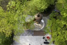 Besides, an “oasis” of joy is created in the courtyard for the owners' three children-a “playground on the doorstep”. A slide surrounded by greenery merges into nature, and the children are happy to grow up away from the city. Adults can also relax with friends over a cup of tea as the children play freely in the courtyard. In this case, they don’t have to sacrifice their own enjoyment of relaxation while looking after children.