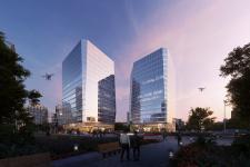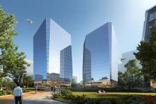 Echoing the surrounding chessboard-like layout and the variation in heights, a unique skyline is created for the city. The low-rise tower is placed in the north while two high-rise towers are diagonally placed in the south. Two piazzas are designed at the corners, unifying the architectural language within the plot and enhancing the vitality to the public. The northeastern piazza integrates with the nearby urban green axis, creating a collaborative working experience and humane communal space. Connected to the pedestrian entrance, the sunken piazza at the southwest brings circulation to the integrated underground work-retail area where the VIP drop-off is also located, creating a superior arrival experience.
