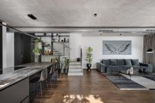 And indeed, the amalgamation of two different design styles is evident throughout the property, for example where the concrete ceiling meets the kitchen’s matt black smooth nano facades and the distressed oak blends wonderfully with the white walls - these two opposite themes come together creating an elegant, sophisticated, and harmonious setting.