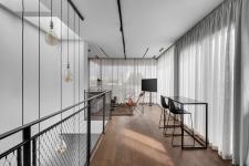 The loft, a 50 sqm space, was dedicated to the eldest son and includes an entertaining area, a kitchenette, a suite, and a balcony that can also be used for entertaining. “This level combines all the elements of a home, within a relatively contained space”, summarizes the designer “The iron, stainless steel, shades of gray, and touches of camel that appear throughout the house - are evident here too. The kitchen very closely resembles the main family kitchen, and the curtains are the same color as fabrics and textiles on other levels. There are many layers in this space too, but no overuse of textures”.