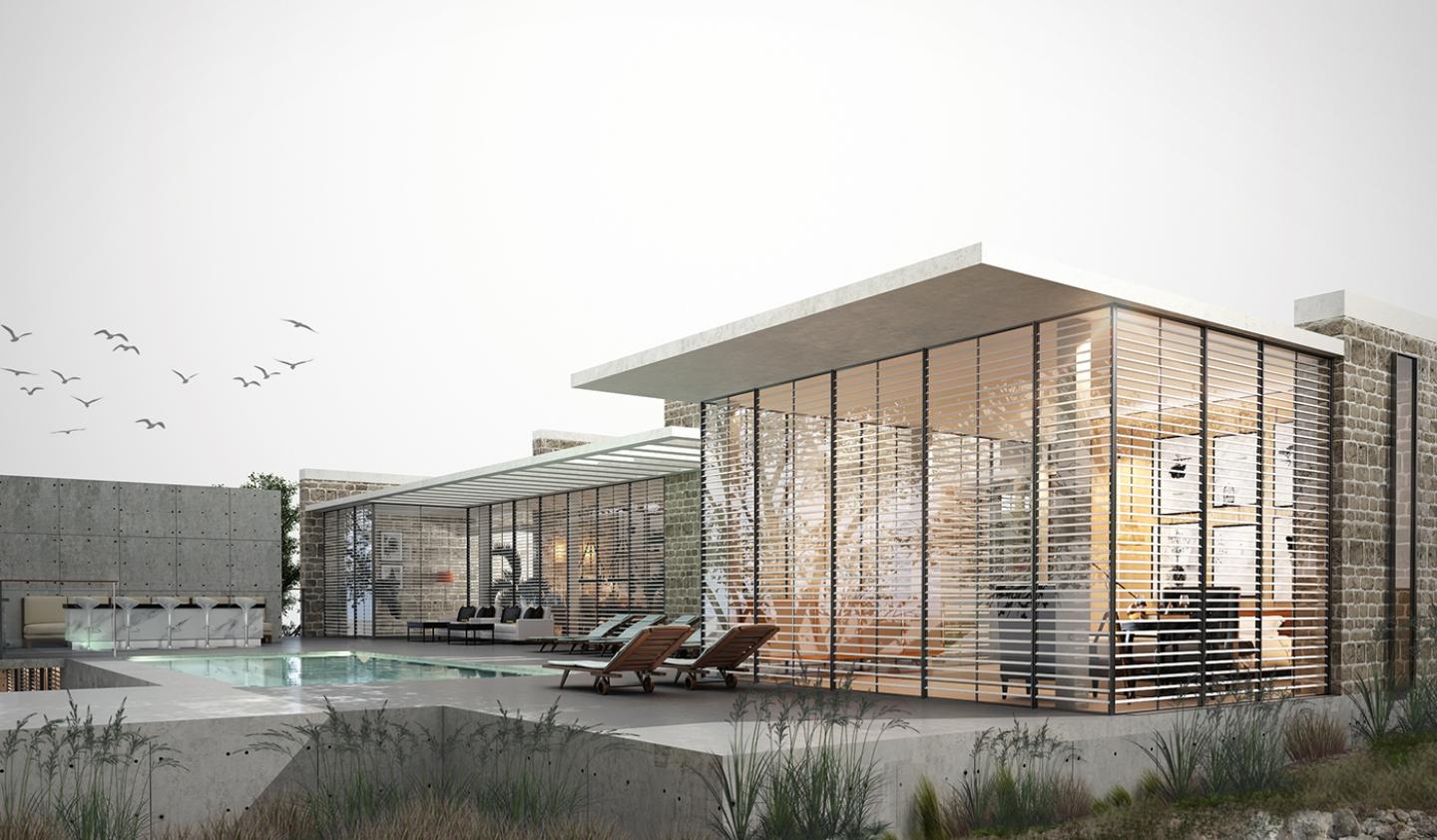 To avoid rivalry with the surrounding nature, the design uses the least possible materials and a single color. The most custom material of the building is the Alaçatı stone used for the walls of the fireplace.