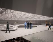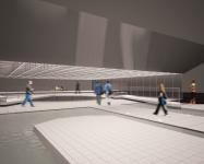 The architect is a kinetic body, simply repulsing the energy of recorded artifacts and postwar experience to the generic vacuum. The scientist records the bouncing of the balls, their speed, their accelleration, their rotation and friction. The source of kinetic energetic release lays inside each individum to get away from the generic vacuum of constraints of preplanned societies, architectural styles and economical systems, the voice of discourse and opinion. Since his research project of the Berlin Wall the scientist has gone to the randomness of bouncing balls in space which becomes a tetris of artefacts called non-pavilion, amphitheater, forum and bunker. The non-pavilion is a special space for a kinetic repulsion of education, the simple comprehensive design of artefacts constructing the content of architecture.