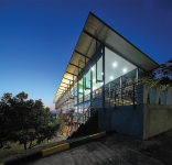 The steep slope of site; almost impossible to build on had to be protected with fair faced RCC part-retaining wall with projections of plinth beams. This was the only in-situ element of structure the balance was assembled on-site within a very short period six months. Solar power, rain water harvesting, zero waste of materials, LED Lighting & VRV AC System, re-usability and the ability to dismantle and re-assemble the entire structure and most of the finishes are the sustainable features of the project. The construction grid was precised from design to construction and critical to avoid cutting and wasting of steel, glass, roofing sheets and even toilet tiles. Virtually zero waste on cutting edges of steel and other materials used was the key design task proposed by the Architect to meet the budgetary constraints. The project’s ultimate success with an architecturally rich, functionally efficient, office building enhancing the co-operate image with overseas visitors/ buyers while motivating the staff. Except the foundation and retaining walls the entire structure can be reused, and the building orientation along the East- West axis ensuring optimum daylight. This building can be categorized as a “Blue Efficient Building” as oppose to a typical green building.