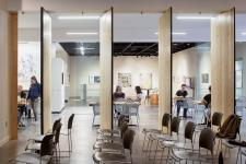 In the Chalmers Hall Café renovation, the studio transformed a highly visible and highly trafficked area of an existing 1970s campus building into a bright, warm, inviting, adaptable, and sustainable space.