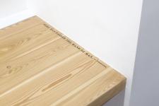 - **cross-laminated timber** for sixty feet of wall (Smart Lam): demonstrating this innovative and renewable construction method that sequesters carbon rather than emits it, and boasts of lower embodied energy than many comparable conventional construction methods