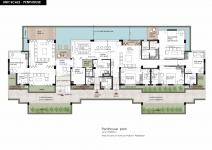 The residential buildings comprise of private duplexes on the 1st to the 8th floors and penthouses on the 9th floor. The ground floor is kept free for community and green spaces opening out into water courts. Dhaka is enveloped between two rivers and has plenty of waterways and channels. Living amidst greenery and water is especially important to the people of the city, and therefore large water courts and green areas have been incorporated at the ground level, elements that bind together the entire neighborhood. Parking is accommodated in the basement and in certain open areas.