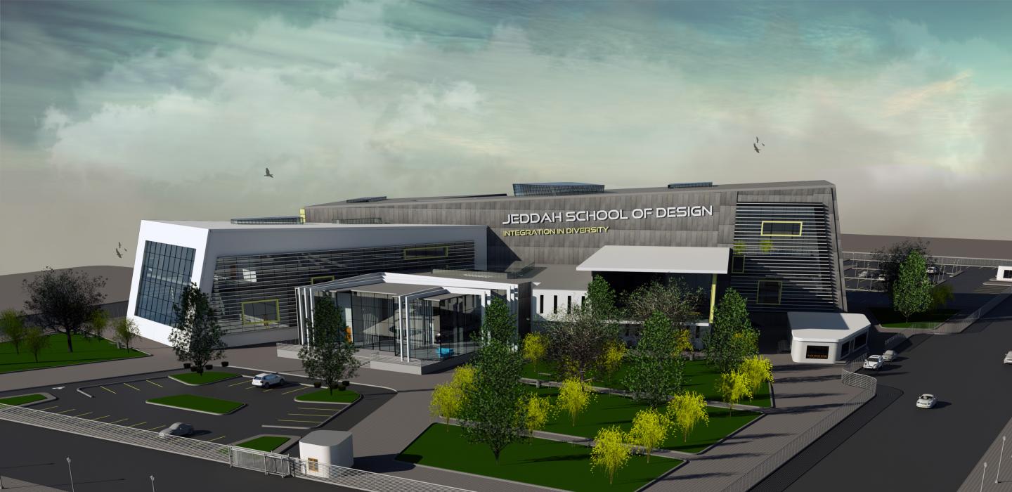 Increase the productivity and Innovation of designers by motivating the integration of different majors in one building where they can meet frequently and work together. The building Exterior represents the four different majors but once a person is inside, the feeling of differentiation will disappear as the interior connects all facilities with each other.