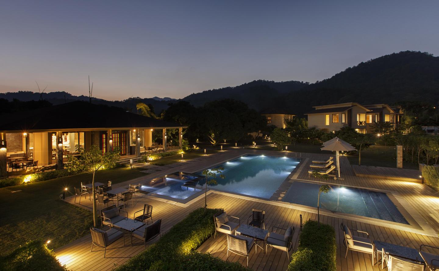 The client's brief - “away from the crowds” takes on an entirely new meaning. Nestled at 1,132 feet above sea level, the 68 rooms and suites have panoramic views of the river and the majestic Himalayas. The resort's ethos to offer a relaxed atmosphere with attentive service is well met by the point-to-point connections offered throughout the complex, which often begins even before the check-in.