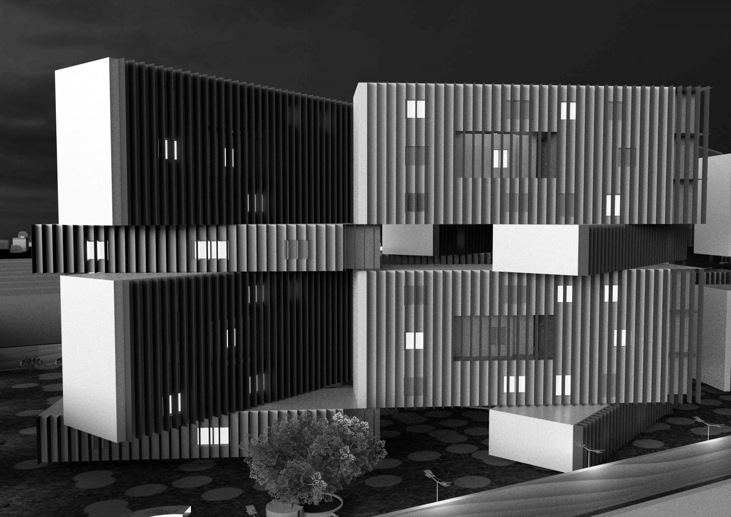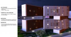 Here the Building blocks were been stacked over each other, where the transitional zone is been used as elevator core.