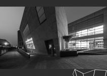 The whole project is divided into 3 built blocks of varied heights, sizes and inclination. The two main built blocks in the forefront, one smaller than the other and inclining in opposite directions away from each other, are planned in such a way that it represents the letter "r" of the logo. These two monolithic concrete blocks have a backdrop of a third straight block placed perpendicular to the two in the front. Overall, the attempt of "an architectural interpretation of the logo" in a built form has been achieved.