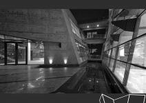 The entry porch has a set of steps that leads to the main entry portico. Ramp access for the disabled is interestingly placed, cutting diagonally across these steps. The main entry portico, triangular in shape, is flanked by water feature on either sides and the steps-ramp combination on the porch side. Independent entry-ways in form of platforms span over the water feature and define the entrance experience.