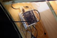 With the use of smart technology, Kepos allows users to get involved through social media and in public space. Plants, soil, and air are equipped with sensor devices, connected to microprocessors that compute the input data to control the output systems. Three interlocking communication circuits orchestrate the performance; watering, text messaging, and lighting performance. The watering circuit senses humidity of soil and air to instantaneously transmit the information of watering request via social media to the community subscribed. However, response requires physical presence and tactile sense by means of a capacitive touch sensing installation that activates a water pump. Dripping water saturates the soil until the humidity sensor communicates the right amount of moisture to a lighting circuit, re-adjusting the colours in animated LED stripes to visualize the state of soil and plants.