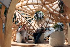 Then, in the true sense of the word, it means acting physically - the green pavilion visitors must be on the spot in the city. No digital control, no smart app is available. Anyone who comes to water the plants from the Twitter or Facebook community has to be in the pavilion and become active. Conversation with another visitor can result - analogously and in direct Vis-à-Vis.