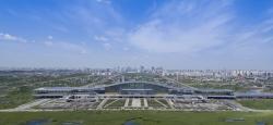 Featuring a 45,000ft² mixed-use terminal building, a 70,000m² car park, and an enclosed space of roughly 130,000m², including a metal-covered, 2,550m-long railway platform, and with a capacity of more than 35,000 passengers per day, the new station, completed in July 2017, will significantly relieve the load from the existing station of Astana, which welcomes up to 18,000 passengers per day.