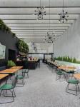 Different uses are stacked vertically across five levels. The entrance threshold announces two routes from the street: one to the retail areas and another segregated “inner street”. The latter allows passers-by to enter through a botanical garden at the end of the plot that takes up the whole height of the building. This promenade ends at the cafeteria on the last level. It’s a space contained on the sides but open to the sky. The first three levels of the building -devoted to retail and exhibition spaces- are also linked by open stairs encompassing double and triple heights.