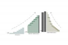 The overall design of the complex is based on the idea of modularity, variety, terracing, and level changes. In order to provide natural lighting and a variety of spaces at the base of the complex several courtyards at different levels and skylights have been incorporated in the design. Not only from the user perspective but also from a natural perspective, continuation of open spaces and terraces which bring quality to the apartments are important regarding the sustainability of animal species and greenery. Considering its central position in the city, it stands as a landmark which humankind and natural life could coexist in one structure.