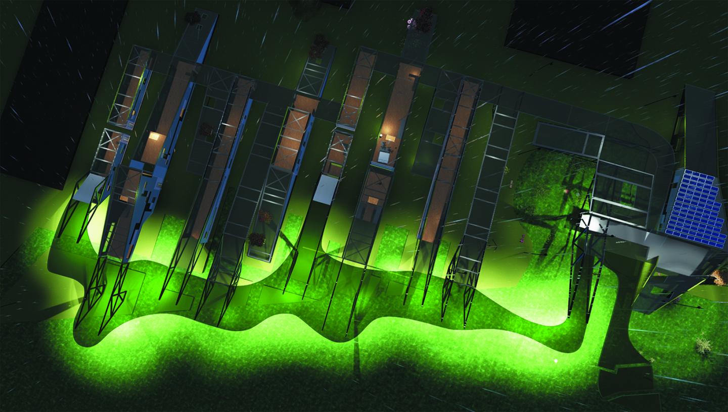 It is not a completely zero carbon design but it is a new sustainable way of living experience for Ankara city. The fundamental idea is elevating main circulation from the ground and creating a new circulation path for residents. This green Algea Bridge consists of a sandwich system of polycarbonate panels. The orientation of the bridge gets lots of sunlight and CO2 that is exactly what algea needs to thrive.