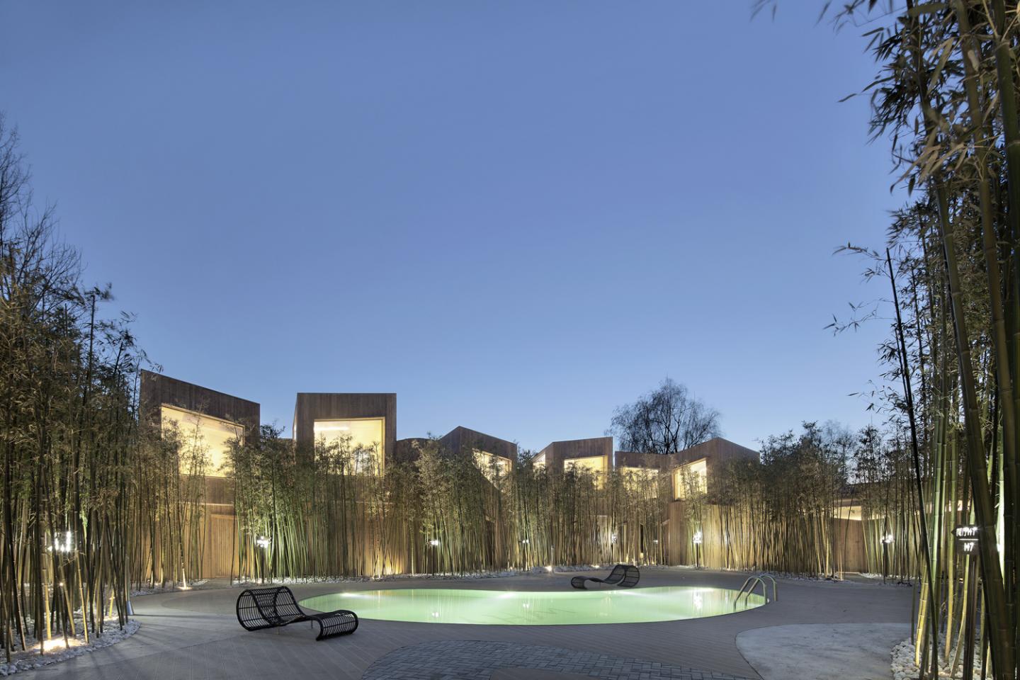The way we would like to describe the scene of WHY hotel is like that Yuanming TAO (AD352-AD427), a famous ancient poet, used in “The Peach Colony” : Walking along the path with trees rustling, water rippling, and tree shadows dancing, the guest feels as though the buildings became indistinct among the bamboo leaves. After a turn, there is a pond with a thin and delicate mist hovering above the spring water.