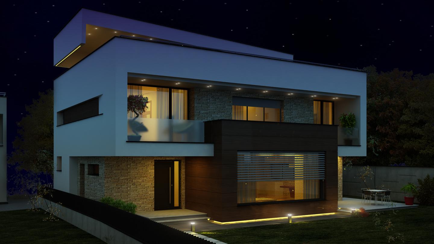 The architect, thus being also the owner of the house, favored the use of materials like the plaster, stone and PVC panels imitating the wood texture along the ground floor of the house. Relating this way the façade with the external area of the house, the garden, which contrasts positively with its overall combination of house’s volumetry and fresh materials.