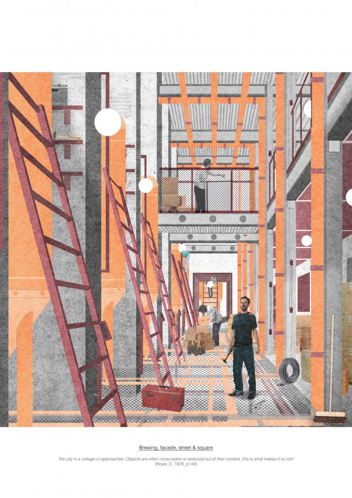 The project choose a brewery as the typology to test these ideas due to the areas surrounding uses: bars, restaurants and clubs. It present a case study for how industry can be re-introduced within an urban context.