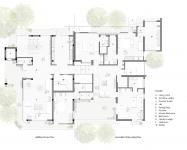 Simple and linear in design, the layout tries to take maximum advantage of a three-side open corner plot. The floor is designed for a single-family unit with clearly defined public and private areas. The living and the dining space are designed as an extension of the open plan to create through & through vision and maximize views. Large openings in these areas attempt to capture maximum natural light and ventilation. The views of the surrounding tree foliage create a very calming and peaceful space, while connecting the inhabitants to nature at all times. The rooms and the family lounge are designed within the existing area, where the rooms are planned around the family lounge, which manifests itself as the heart of the house, also opening out to a large terrace. The Terrace/third floor are designed to be a recreational zone with a large room, suitable to host parties and gatherings, spilling out to a leisurely outdoor space. Bringing the outside-in and enabling a visual connect to the outside space, the architecture manifests itself as a spatial strategy to connect Man with nature.
