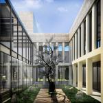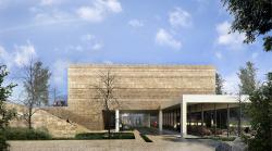 Natural stone as the dominant material in the landscape and on the facade can harmoniously reflect the spirit of the surrounding texture. In this historic region a contemporary understanding is as reflexive as it is unimposing. On the same surface different stones of the same stone are brought together and the relationship of the material with light is diversified. In the entrance and courtyard facades, the daylight effect is increased and a shell made of glass and steel is designed.