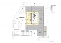 There are two different points of access to the building, each on different levels. The first one is from the main road and the second is from the side closest to the governorship building. When accessing the building from the road one will find a square in front of the museum. Reminiscent of the ‘Rüstempaşa Bedesten’ schema, which also has a courtyard in it; the museum is designed as it relates to the park and the square. The courtyard, the park and the square are integrated into one another, planned as a temporary exhibition and café.