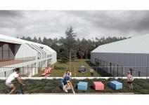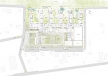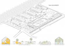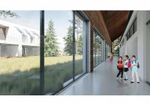 The forest in the north and the lake in the south of the project area are the most important criteria in the formation of all concept. Three major open spaces are created in the field where the building is located and this situation forms the backbone of the concept. These areas are an education zone which is expected to belong only to students, an assembly area which is open for the public activities and a semi-pulic zone including auditorium, cafeteria, art school, gymnasium and open playground which are used by both students and general public. While the semi-public buiding main frame is created, it is aimed to generate a treashold between all open areas and maximize public use. A green roof is created In this area so that a visual relation is provided with forest and lake. Smaller building blocks which are designed according to general scale of region, are integrated to this main mass.