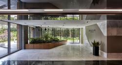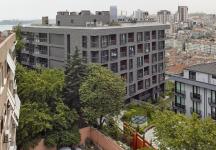 Nidapark Besiktas is a housing project located in a dense urban setting at the heart of Istanbul’s metropolis. The pre-existingtrees helped guide the overall theme from inception to execution. It was essential that the Taurus Sediments and trees in that area were well preserved as mandated by Istanbul University’s directive report. This bit of historic preservation became one of the most important factors in positioning the building in an L shape. The relatively narrow part of the north side of the arch was left empty as a welcoming square. The dismountable, historical pool, which consists of the existing, fragmented stones in the plot, is both visually and functionally important. The landscape arrangement accentuates the serenity and balance of the building as a whole. The L-shaped building's south-facing garden is designed as an oasis for the sun-drenched area, perfect for socialisation and community building.