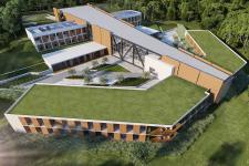 The elderly represent an increasingly significant portion of the population in Brazil. A good part of the elderly population is healthy or has some slight physical disability that causes them to need assistance. The lack or low quantity and quality of stimuli and autonomy, along with the sedentarism, contribute to accelerate the process of old age. The purpose of this architectural project of the Residential of the 3rd age is to "Retrofit" a construction of an abandoned hospital with 70% of the concrete structure executed. The new building aims to: prevent and promote physical and mental health; preserve and stimulate remaining physical and psychological capabilities; especially the socialization of the elderly. These demands will be met considering their physical and psychological characteristics, through the appropriation of spaces gearedtowards leisure, recreation, social interaction, culture, special services (such as the medical-ambulatory sector). The target population of the proposal consists primarily of elderly people, over 60, independent or semi-dependent, lucid or not, who can enjoy the type of service provided by the institution. The project located in the city of Caxias do Sul, in the extreme south of Brazil, in order to provide a welcoming environment for both patients and health professionals, we introduce a concept that is attractive, accessible and supportive, creating a positive space capable of acting as a center of social activity, not only a place of housing for the elderly, meeting the users' needs, besides the formal, functional, technical and compositional aspects of the architecture, it was also a challenge to harmoniously insert the architectural project in the pre-existing concrete structure of the Hospital dated 1994. The project aims to be an open space for the community, where the first element to consider was the exterior of the building and its materiality, such as the foundation and the existing "cast in place" concrete structure, first point of connection between the user and the environment. Instead of treating only a general volume of functions as in the "old" project, a volumetric proposal was developed, taking advantage of the existing circulation axis, which defines two squares with different uses, and thus develop two wings that house the volumes that contains dorms, activities and services. The main access takes place through a large square at the top level of the terrain, whose difference is 12.00m, with a strong marking of access on the central axis that shelters the arrival of users and visitors. The whole complex is organized through the central axis that accommodates the unevenness of the terrain. This axis, in addition to organizing the spaces, also directs and directs people to the interior of the building through its empty spaces with shops, cafes, clinics, exhibitions that integrate the ample space bathed by natural light. Such a pleasant space turns out to "oxygenate" the user experience. The volumetry of the central axis is configured by a metallic structure, "shell" independent of the old concrete structure, and the inclined thermal insulation cover this volume is adapted in the topography, with interaction between the internal and external environment due to its glass closure. The project was divided into two wings of care: the upper wing at the highest part of the land accommodates the elderly who need more assistance and outpatient care. Already in the wing located in the inferior levels of the ground we have the apartments and suites for the elderly more independent, and in the intermediate level we find the convivial areas, restaurant, rooms multiples uses and green squares. The materials chosen were wood and brick, where these materials seek to bring users closer to their origins and residential memory through their color and texture, while steel and glass allow lightness with the integration of external nature, as well as a notion of appropriate modernity for health buildings. Several sustainable systems such as solar panels, thermal panels, green roofs, reuse of rainwater stored in the inclined roofing volume, and the use of 100% of the abandoned concrete structure since 1994 will be implemented. The values that prevail in the project are clearly expressed in their volumetry, as the upper volume of the building emerges from the earth, wanting to be the business card for the users.