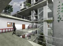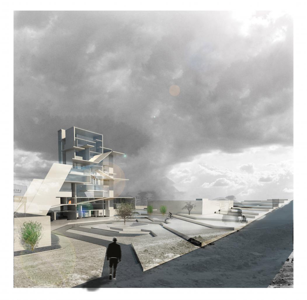 Settlements of the buildings are arranged according to differential zoning. Roadside areas sports, the middle part is residential, and riverside areas assigned as social areas. Between social and residential units big pedestrian alley is planned to increase relation. Ramps are also creating flexible and direct relations between the site, social areas and the residential units. Waterfront area is analysed with different perspectives and programmed with dynamic scenario of continuous social, cultural and productive spaces.