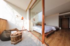 Great emphasis was given to the individual identities of windows and hence the identities of different rooms. The original cookie-cutter windows and ill-conceived balconies were transformed into openings of various sizes to match different identities. In the process, two landscaping techniques of Chinese garden — framed scenery and blocking scenery were applied. Bringing into rooms cobblestones, handmade cloth and furnishings that were designed on site and made of locally sourced old logs allows the hotel rooms, which may look similar to one another in pictures, to offer their own rich, natural yet very different experiences to the occupants.