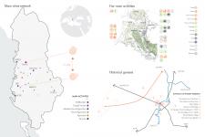 system of interrelated connections (historic roads, the cathedral, structures of the Communist era,