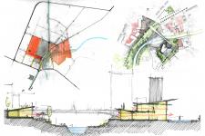 becomes the generator of a third axis as a new element between the north and south of the city.