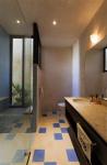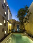 In the exterior area, yellow and blue pigments were used to color the cement. The pool; stepped, and made in white concrete was adapted to the preexisting vegetation as in the case of the orange tree inside the pool and another tree in the perimeter wall. A rest area, whose design seeks an internal balance through simplicity and strength of pure lines, this being what provides the natural ventilation to spaces around it, and in turn transforms its context with light throughout the day.