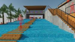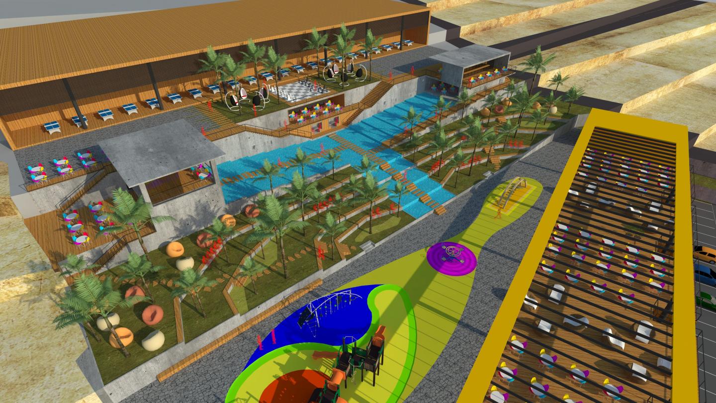The plot area is designed to contain different functions.The two-storey building is located at the lowest level, with small shops and 6 restaurants on the top floor.On the top floor of the restaurants there is an open eating and drinking terrace.This eating and drinking airport is associated with the children's playground.In the upper levels, the plot is designed in harmony by establishing a relaxation zone consisting of artificial waterfall and palm trees.Sit under the palm trees, talk with your friends, read books and enjoy the open air.Artificial waterfall, 4 cafes and restaurants are connected to the upper level.