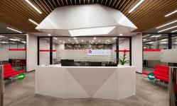 The sandstone colour used on the furniture is intended to create an appearance in harmony with all the elements, without stuffing the space. While the sliding and folding panels featured in the meeting rooms offers a functional use and aesthetical look, the difference of the manager rooms from the working areas is highlighted with more extensive use of the black colour and wooden materials. Making the office more dynamic by featuring the red, which is the corporate colour of the company, at different locations such as the reception lounge at the entrance, the couches between the cabinets and the foils on the joineries, Boytorun Architects has turned the reception counter, which resembles a crystal with its design, into an impressive meeting point. A cosy environment is created with the wooden laths used on the ceiling and some cabinets.