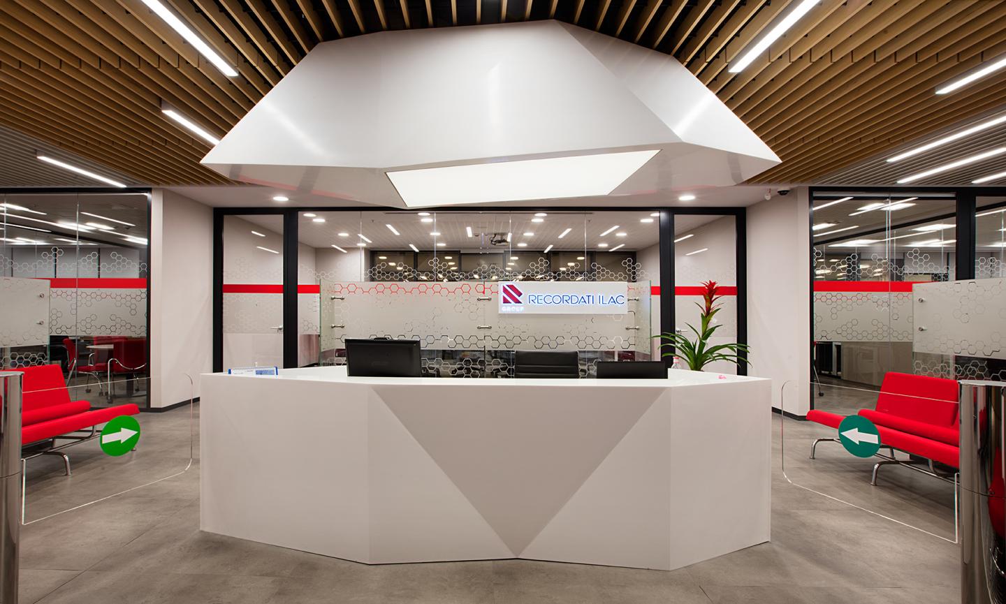 In addition the transparent partitions and the foil veneers fixed on these partitions, which remind molecular sequence, used at the Recordati Office where the employees make the most of sunlight in full efficiency thanks to the light-colour wall paints that are used in a way to reinforce the transparent frontage of the building, make this office more vivid.