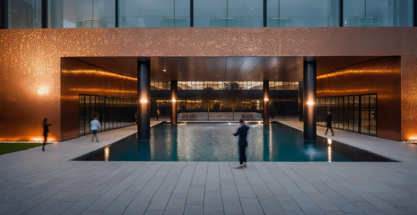 The project is located in Kigali, the capital of Rwanda. Rwanda is one of the few countries in the world with its more beautiful natural structure than in the Renaissance paintings. We think that every building to be built in this country should be built in accordance with this beautiful nature. The land area behind the street where the Serena hotel is located is located in one of the most beautiful and valuable areas of Rwanda. The project gradually rises towards the background, referencing the hills of Rwanda. The courtyard can be entered through a wide space on the ground floor. The entrance has been enriched by designing an ornamental pool in this space. The columns come to this pool and the relationship between the structure and the water is established. There are restaurants in the courtyard that can be used by people staying in the surrounding hotels. The rising block at the front contains leasable office spaces. The structure is covered with copper facade panels, referencing the original red earth color of Rwanda. Aims to add an architectural value to the surrounding area. Continuity of the side surface defines the architectural character of the building. The courtyard is entered by passing through the space under the office block. Houses to take place in the building, step by step rising. This step-character rise also adds architectural value to the flat-lying structure. The building contains a dynamic architecture within itself with its contrasting mass design at both ends. The single piece rising vertical block at the front and the fragmented, terraced rising part at the back have created an architecture that emphasizes each other in the same structure.
