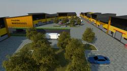 The whole building complex is sitting in 2 different levels. Warehouse buildings are located in the courtyard level. The shops are located 4 meters below the courtyard. Access is provided to future users by car parking and vehicles located behind the shops and access to the shops was also provided by a 3-meter pedestrian path in front of the shops. The whole building complex is designed by leaving a 3 meter withdrawal distance from each side of the land border.