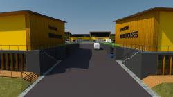 The main entrance gate of the warehouse buildings is provided with a door which is 5 meters wide and 4 meters high. Also for human use, there is a common gate on each storeroom, which opens into the entrance hall. You can reach the office floor at the level of 4.5 meters with the stairs in the entrance hall. On the ground floor, entrance hall and wc+change room about clothes for employees are designed.There are 3 office, service kitchen and wc on the each office floor.