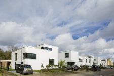 The structure of these houses is spatially interesting, because it has a split-level plan with rooms of various heights. The living rooms of the houses are at least 30m2 and almost 4.20m in height, which is quite a unique height for a residential house. Each house has been designed for its residents like a personally tailored suit, but their white plastered facades and black window frames still make them feel as a uniform and coherent ensemble, reminiscent of the famous Weißenhofsiedlung in Frankfurt.