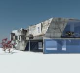 The design borrows certain paradigms from the surrounding buildings and merges them with an exposed concrete envelope with protruding bay windows on one side and simple glass elevation on the other long side. The overall mass of the building reveals a strong statement of presence and modernity with a twist of a rich cultural context.