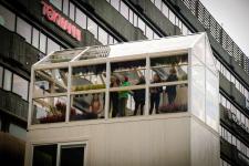 The first 1:1 scale prototype of the Tikku was realized for the Helsinki Design Week 2017 outside of Atheneum in the heart of Helsinki. This Tikku had 3 floors: sleeping, working and green-house.