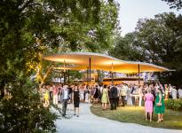 The concept of a pavilion provided the inspiration for the new construction of the catering zone in the Grafenegg Palace Park. Its experiential potential changes during the year according to scenarios, users and seasons. The “floating” roof covers the open-air zone. The free roof contour continues the lines of the existing stock of trees. Its roof design suggests all-round accessibility to the pavilion, taking effect as an open position in the space. An interplay is generated between the groups of trees, pastoral open spaces, and the design of the roofing.